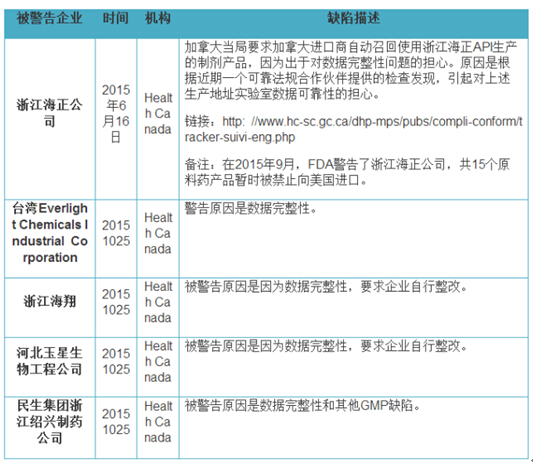 本文數(shù)據(jù)來(lái)源主要來(lái)自FDA警告信數(shù)據(jù)庫(kù)、歐盟GMP檢查數(shù)據(jù)庫(kù)和加拿大官方檢查數(shù)據(jù)庫(kù)。對(duì)于某個(gè)企業(yè)被多個(gè)官方機(jī)構(gòu)警告的情況,只在其中一方官方機(jī)構(gòu)數(shù)據(jù)庫(kù)的案例中介紹。