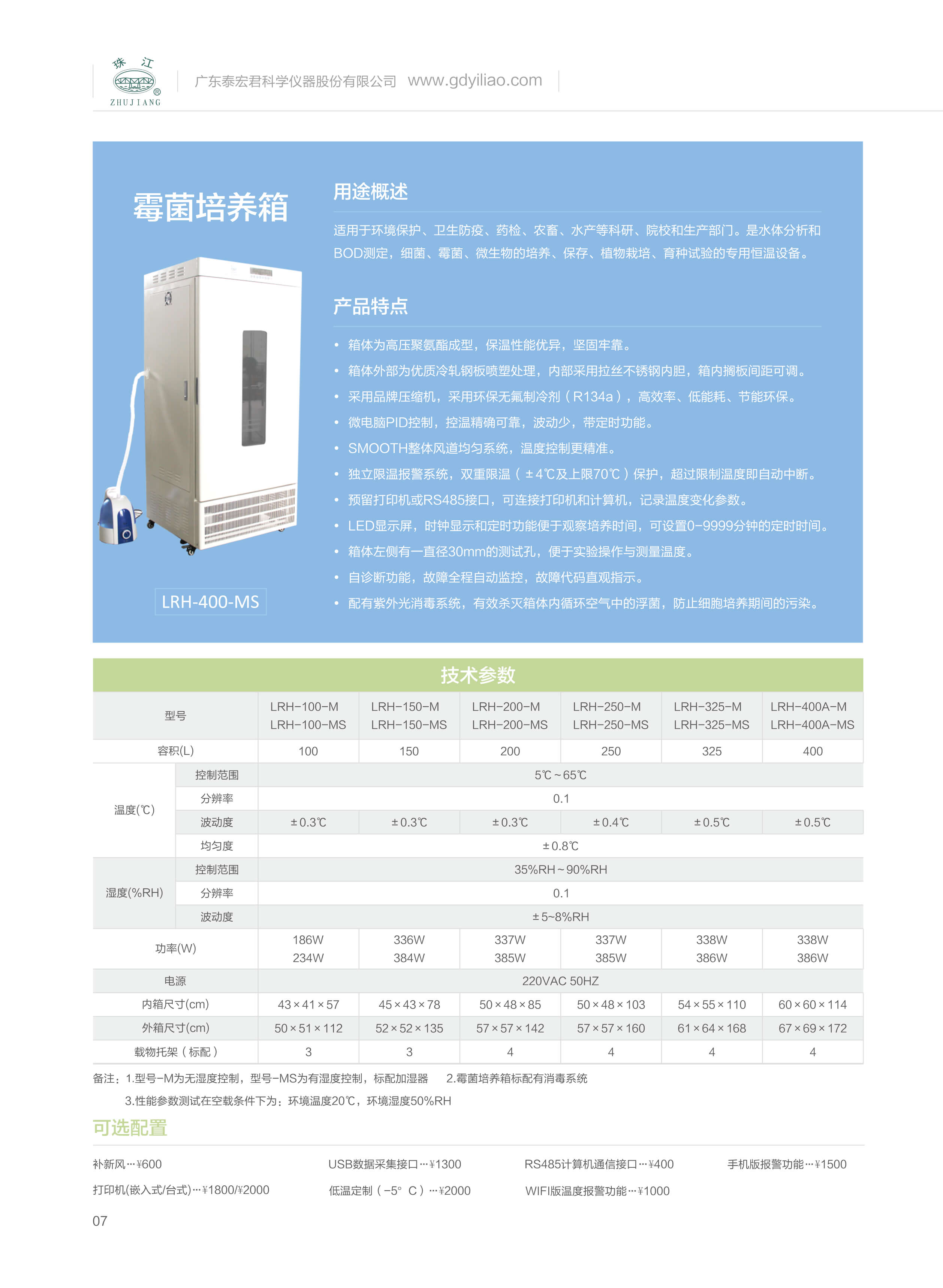 注:ME為無濕度控制,MSE為有濕度控制,標配超聲波加濕器,50%-65%RH,需要溫度在35℃~65℃。