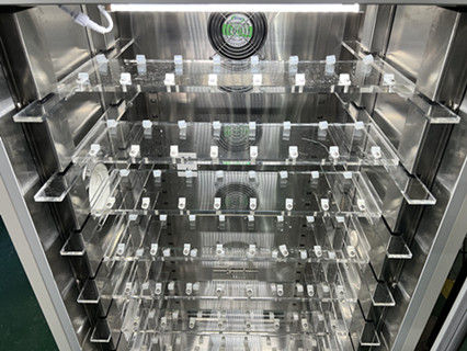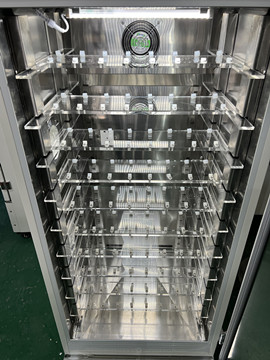 2、箱體外部為優質冷軋鋼板噴塑處理,內部采用拉絲不銹鋼內膽,箱內擱板間距可調。